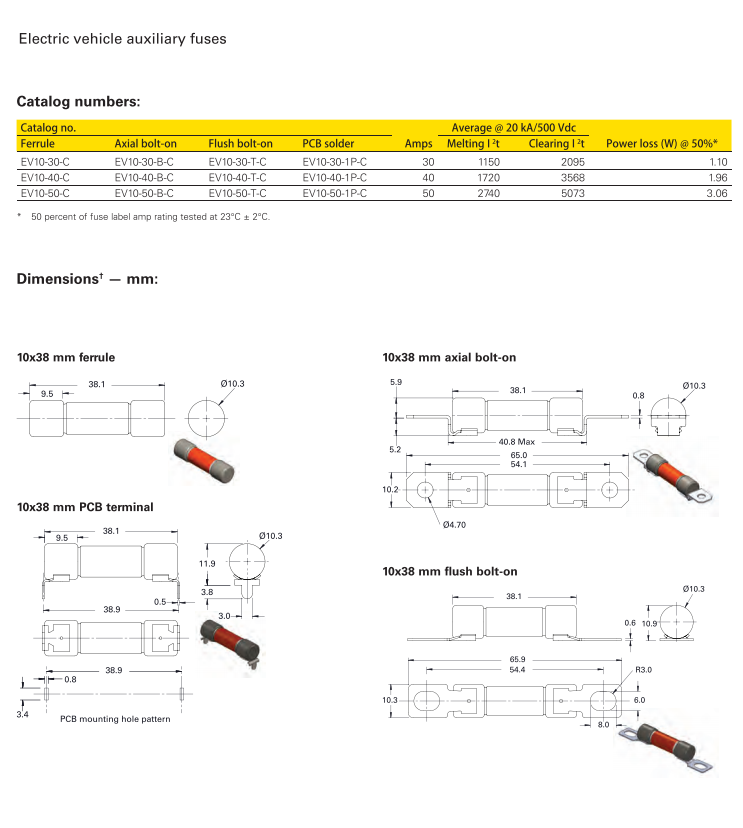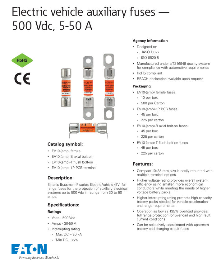 EV10(500V)新能源車用bussmann EV EV10-30-B-C EV10-30-1P-C EV10-30-T-C EV10-30-C EV10-40-B-C EV10-40-1P-C EV10-40-T-C EV10-40-C EV10-50-B-C EV10-50-1P-C EV10-50-T-C EV10-50-C