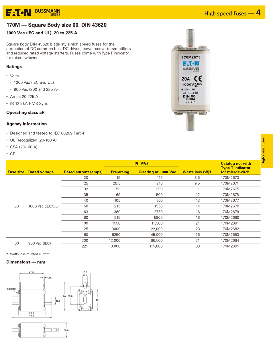 170M 1000V(20-225A)刀型安裝 170M2676 170M2675 170M2674 170M2673 170M2685 170M2684 170M2683 170M2682 170M2681 170M2680 170M2679 170M2678 170M2677