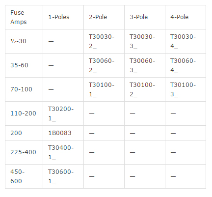 Catalog Numbers (amps)