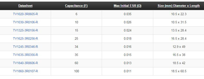 TV系列超級電容 TV0820-3R0335-R TV1020-3R0605-R TV1030-3R0106-R TV1325-3R0156-R TV1625-3R0256-R TV1245-3R0346-R TV1635-3R0356-R TV1840-3R0606-R TV1860-3R0107-R
