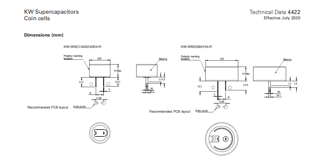 KW系列超級電容 KW-5R5C104-R KW-5R5C104H-R KW-5R5C105-R KW-5R5C105H-R KW-5R5C224H-R KW-5R5C224-R KW-5R5C334H-R KW-5R5C334-R KW-5R5C684H-R KW-5R5C684-R