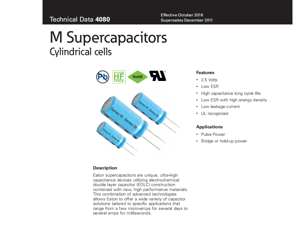 M系列超級電容EATON M1030-2R5605-R M0810-2R5105-R M1020-2R5305-R M0820-2R5205-R M1325-2R5905-R