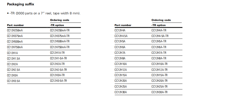 產(chǎn)品型號:CC12H250mA-TR CC12H375mA-TR CC12H500mA-TR CC12H750mA-TR CC12H1A-TR CC12H1-5A-TR CC12H2A-TR CC12H2-5A-TR CC12H3A-TR CC12H3-5A-TR CC12H4A-TR CC12H4-5A-TR CC12H5A-TR CC12H6A-TR CC12H7A-TR CC12H8A-TR CC12H10A-TR CC12H12A-TR CC12H15A-TR CC12H20A-
