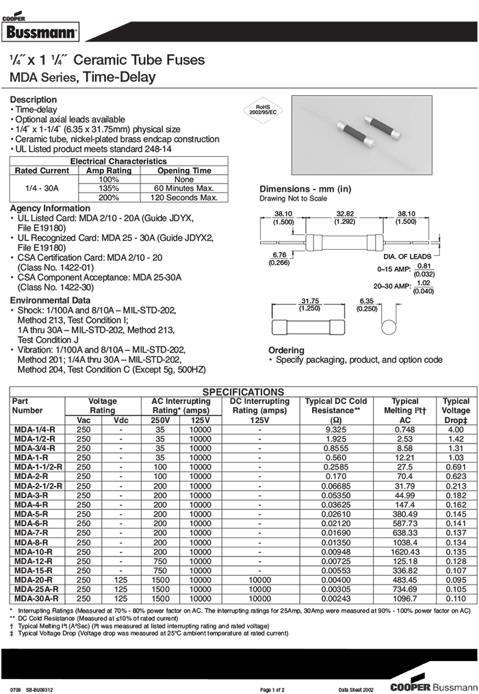 Bussmann MDA陶瓷保險絲 250V 慢斷 MDA-6-R MDA-7-R MDA-8-R MDA-3/4-R MDA-30-R MDA-3-R MDA-4-R MDA-2-1/2-R MDA-25-R MDA-2-R MDA-15-R MDA-10-R MDA-20-R MDA-12-R MDA-1/4-R MDA-5-R MDA-1-1/2-R MDA-1/2-R MDA-1-R