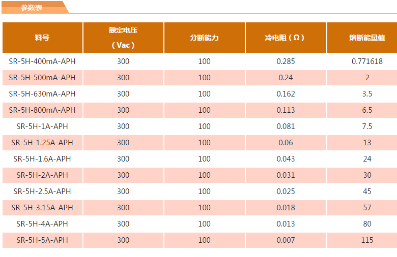 產(chǎn)品型號:SR-5H-800mA-APH,SR-5H-630mA-APH,SR-5H-5A-APH,SR-5H-500mA-APH,SR-5H-4A-APH,SR-5H-400mA-APH,SR-5H-3.15A-APH,SR-5H-2A-APH,SR-5H-2.5A-APH,SR-5H-1A-APH,SR-5H-1.6A-APH,SR-5H-1.25A-APH