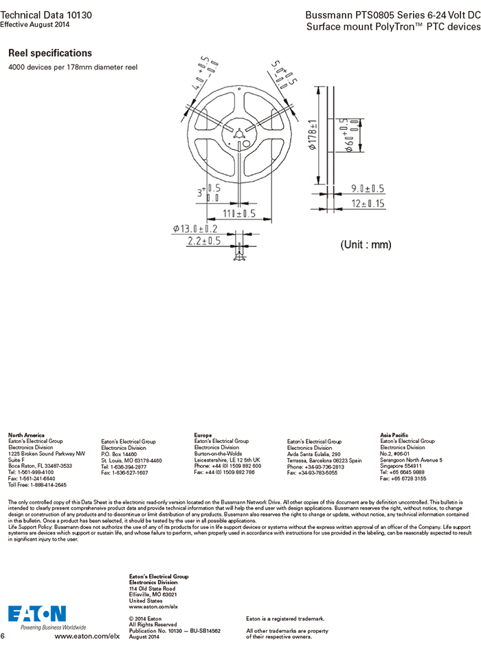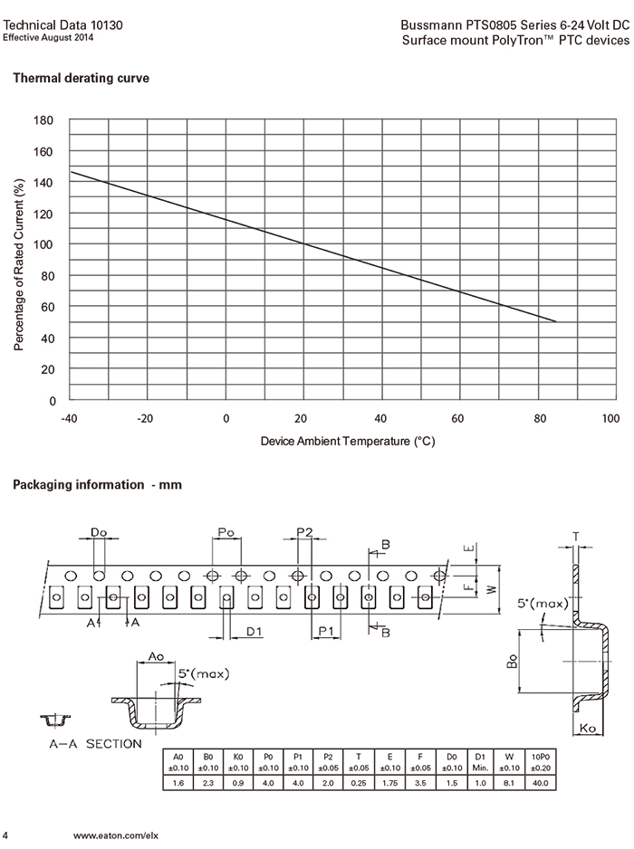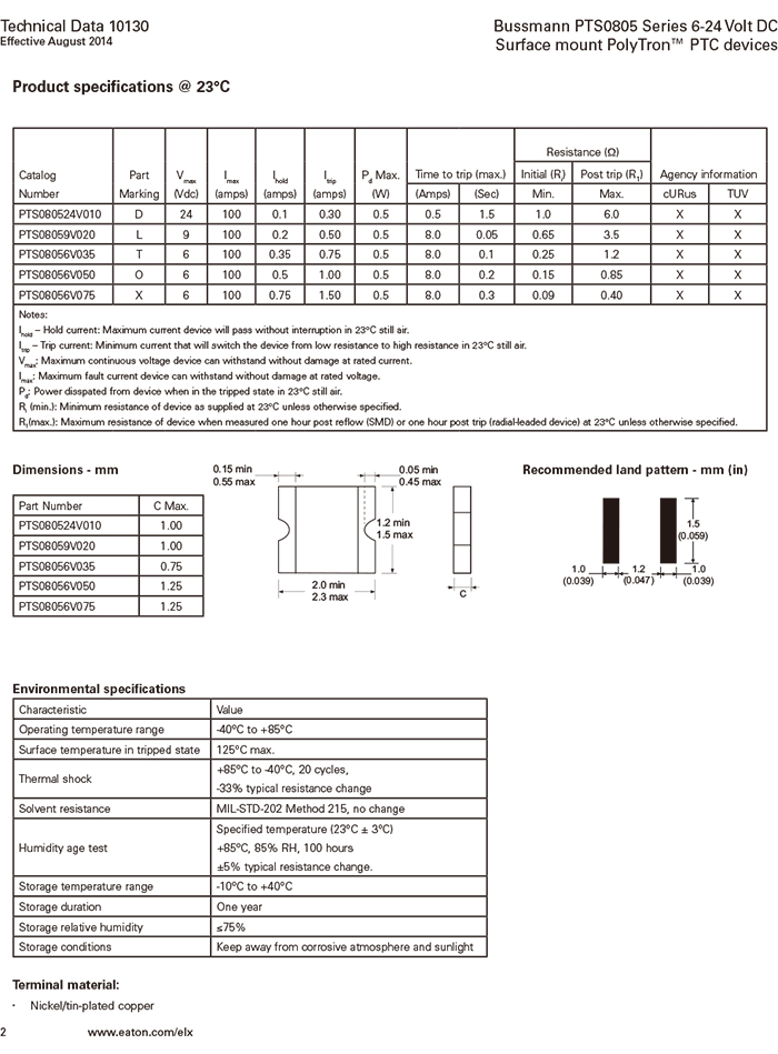 美國Bussmann PTS0805系列 自恢復(fù)貼片保絲