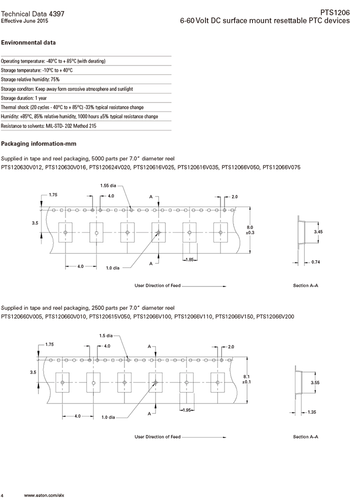 Bussmann PTS1206系列 自恢復(fù)貼片保險絲