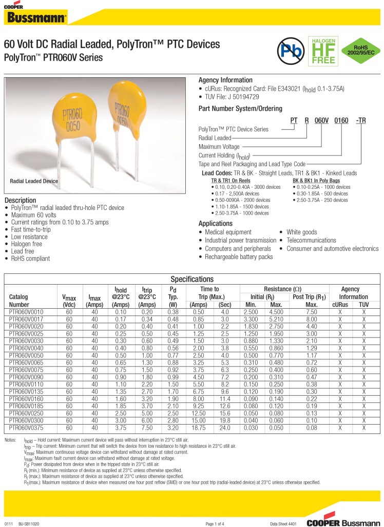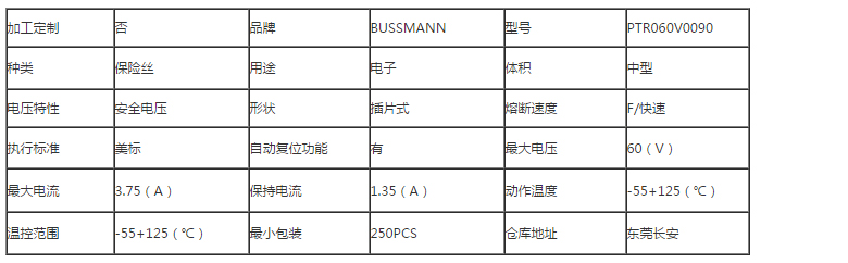 巴斯曼 PTR060V系列 可恢復保險絲