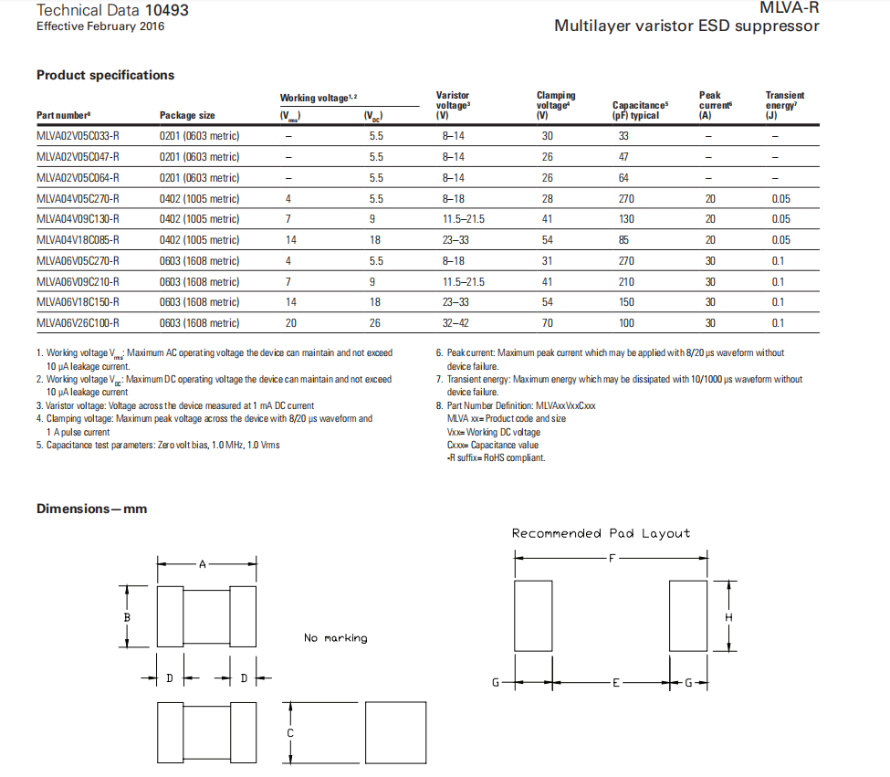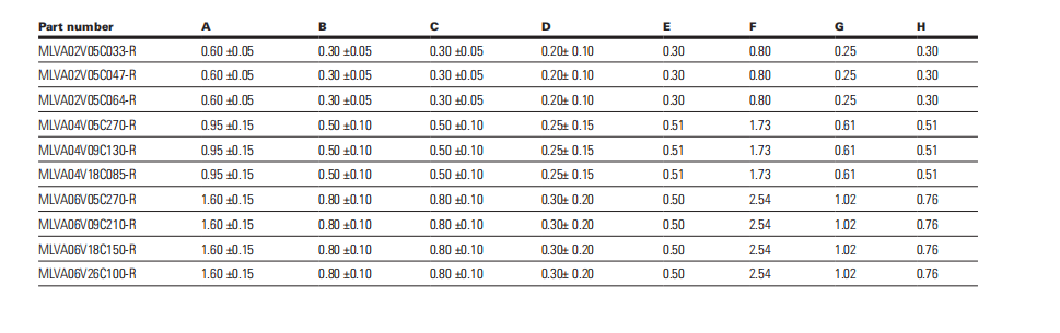 產(chǎn)品型號:MLVA02V05C033-R,MLVA02V05C047-R,MLVA02V05C064-R,MLVA04V05C270-R,MLVA04V09C130-R,MLVA04V18C085-R,MLVA06V05C270-R,MLVA06V09C210-R,MLVA06V18C150-R,MLVA06V26C100-R