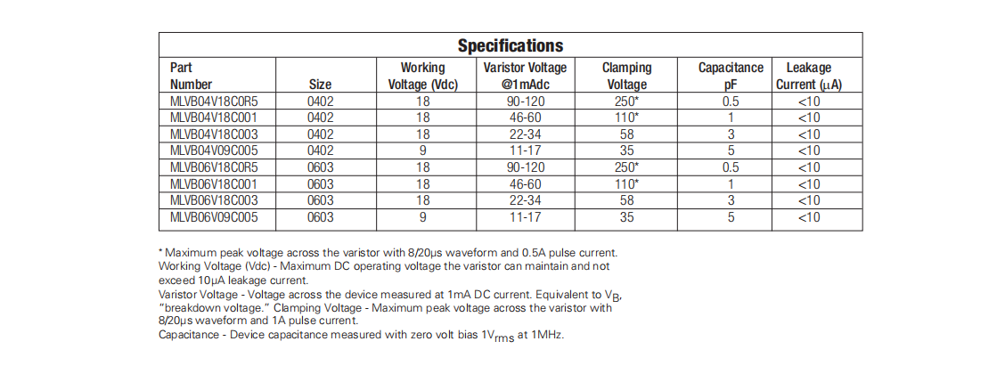 產(chǎn)品型號:MLVB04V18C0R5,MLVB04V18C001,MLVB04V18C003,MLVB04V09C005,MLVB06V18C0R5,MLVB06V18C001,MLVB06V18C003,MLVB06V09C005