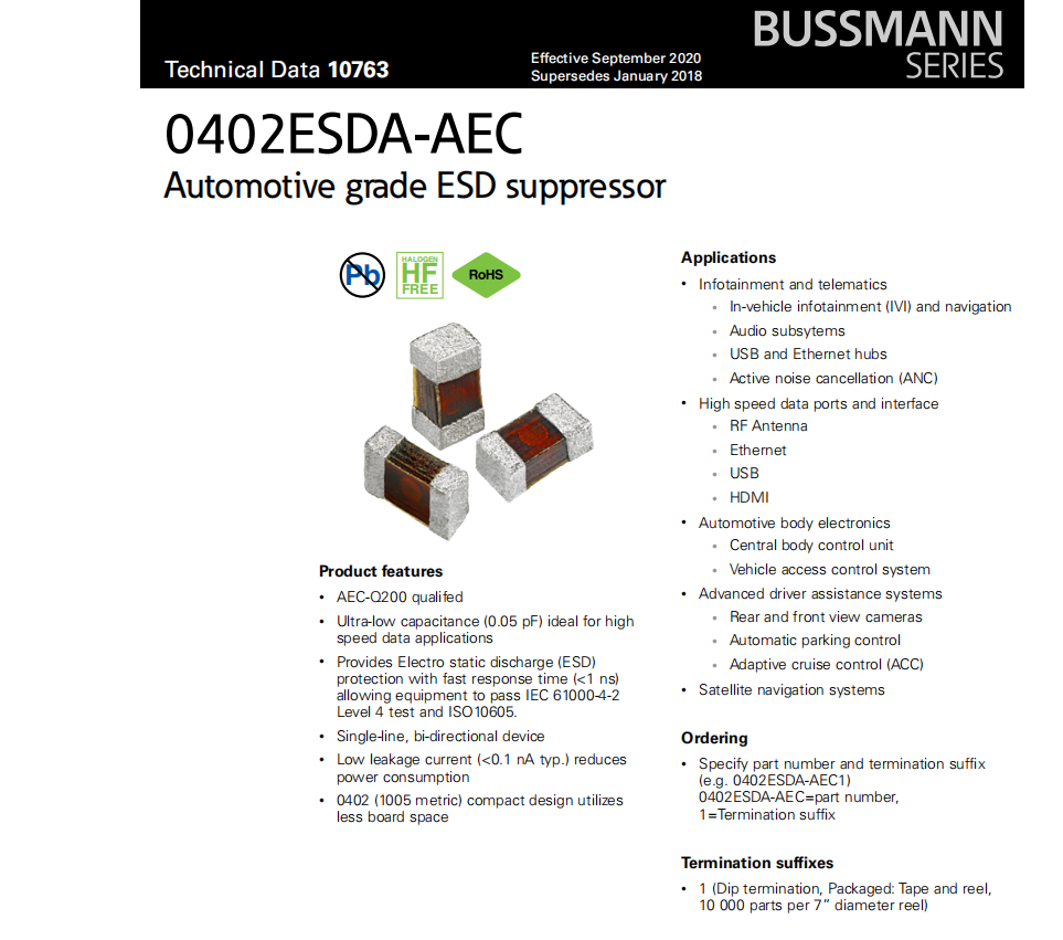 產(chǎn)品型號:0402ESDA-AEC 0402ESDA-AEC1