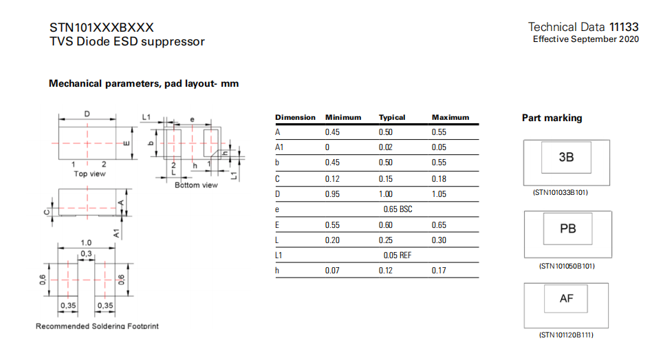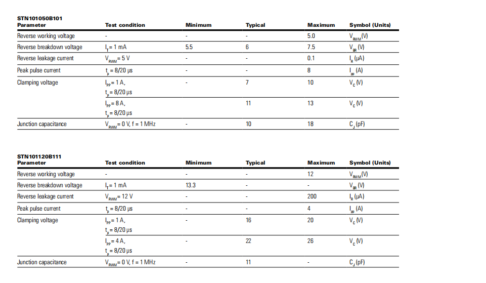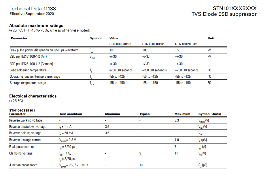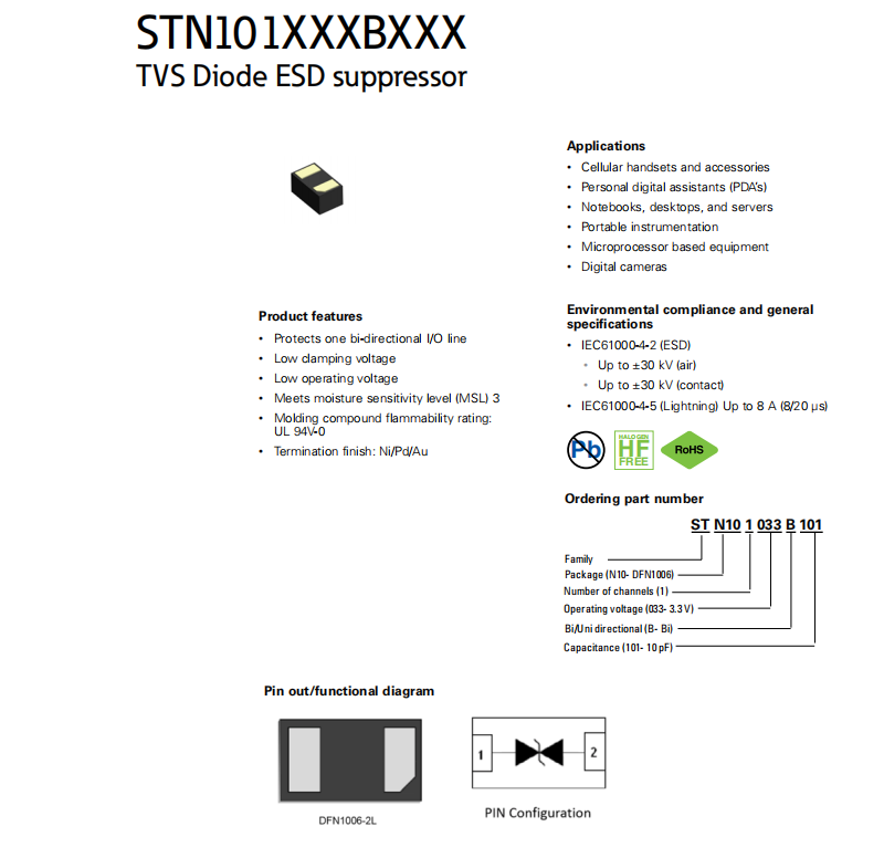 STN101033B101系列 TVS二極管ESD抑制器