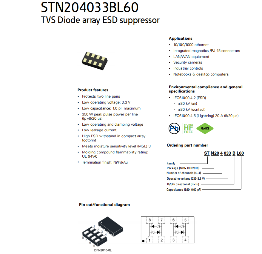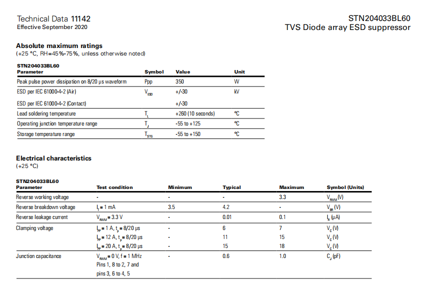 STN204033BL60系列 TVS二極管ESD抑制器