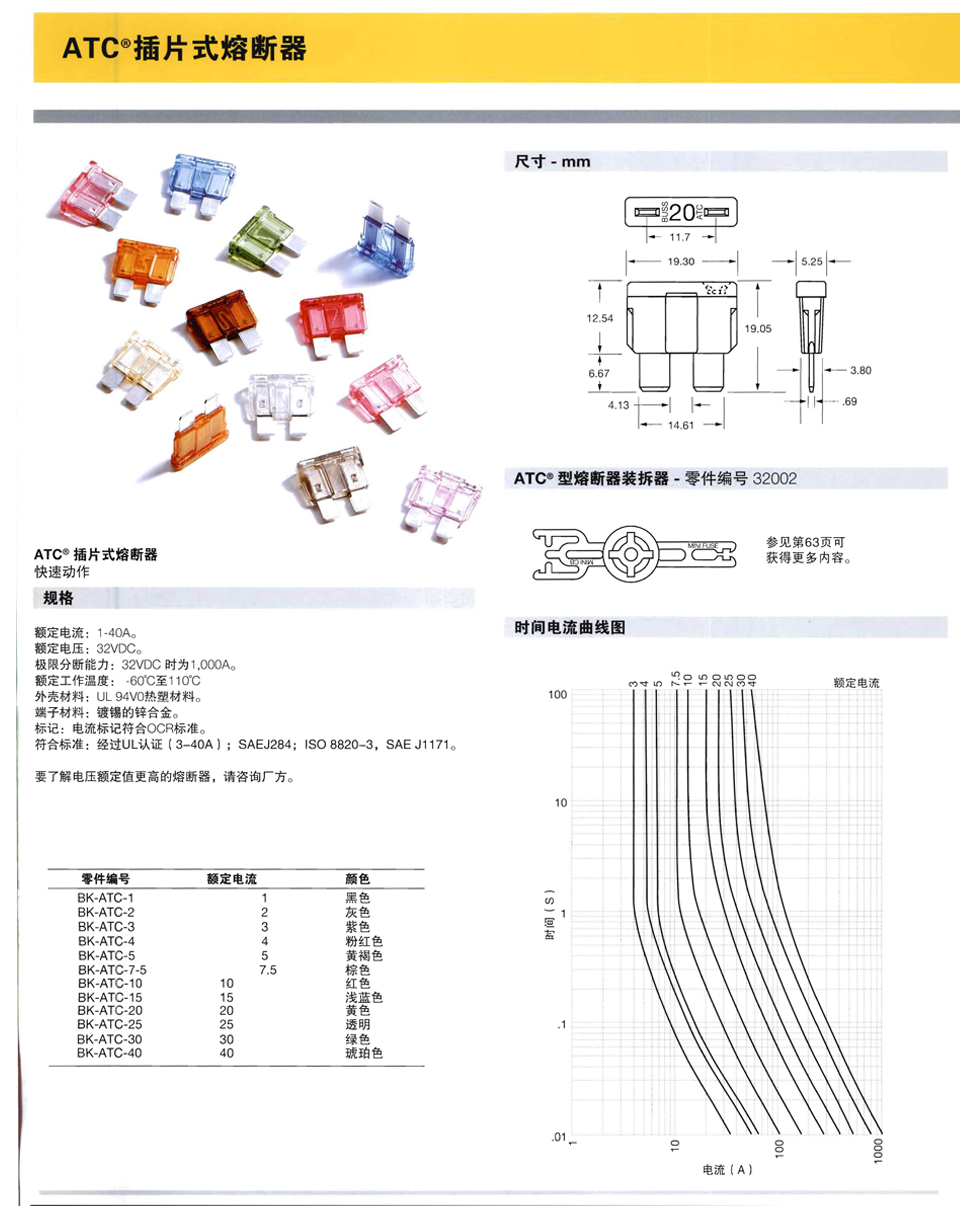 Bussmann ATC系列汽車插件保險絲 BK/ATC-25 BK/ATC-20 BK/ATC-30 BK/ATC-3 BK/ATC-40 BK/ATC-4 BK/ATC-7.5 BK/ATC-5 BK/ATC-10 BK/ATC-1 BK/ATC-2 BK/ATC-15