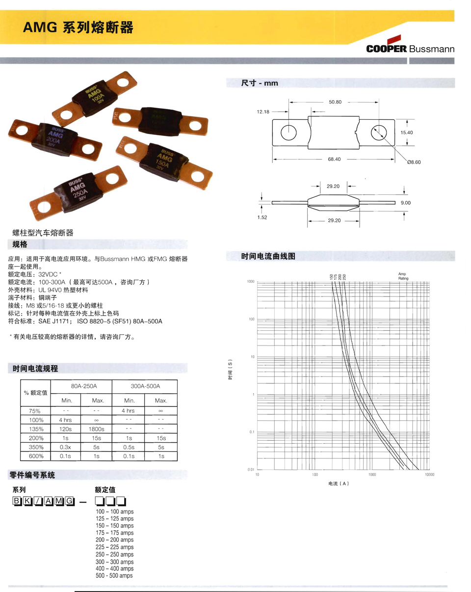 AMG系列車(chē)用熔斷器 BUSSMANN BK/AMG-200 BK/AMG-175 BK/AMG-250 BK/AMG-225 BK/AMG-400 BK/AMG-300 BK/AMG-500 BK/AMG-125 BK/AMG-100 BK/AMG-150