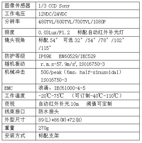 提供多種可選視角,自動(dòng)檢測(cè)照度與紅外補(bǔ)光燈控制(閾值可調(diào))攝像機(jī)表面特殊處理,耐受嚴(yán)苛氣候條件,攝像機(jī)結(jié)構(gòu)為我司專利產(chǎn)品,采用專利技術(shù)達(dá)到防水密封和保護(hù)線纜的多重效果,內(nèi)部安裝結(jié)構(gòu)三軸方向加強(qiáng),提高任意方向的振動(dòng)防護(hù)能力,跌落、正弦振動(dòng)、隨機(jī)振動(dòng)完全滿足ISO16750-3標(biāo)準(zhǔn)。該款機(jī)身還適用于模擬高清(AHD)攝像機(jī),實(shí)現(xiàn)1080P(200w像素)高清畫面。